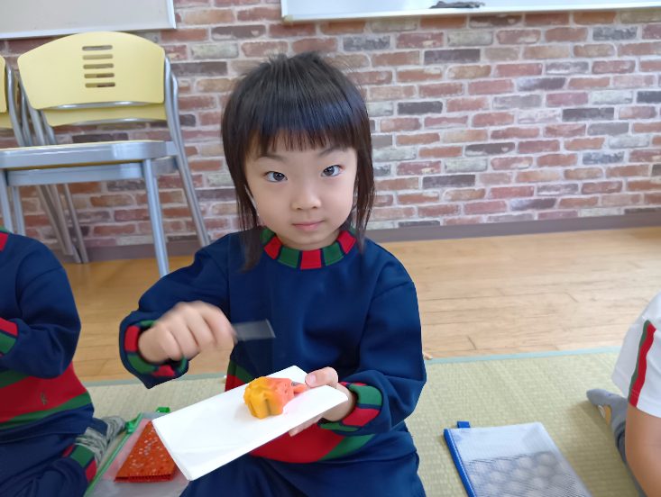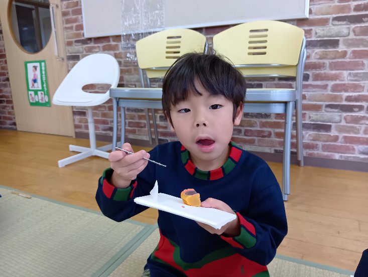 本日はもみじの形をした和菓子でした!色鮮やかで美味しいお菓子に大喜びの子ども達でした🎶