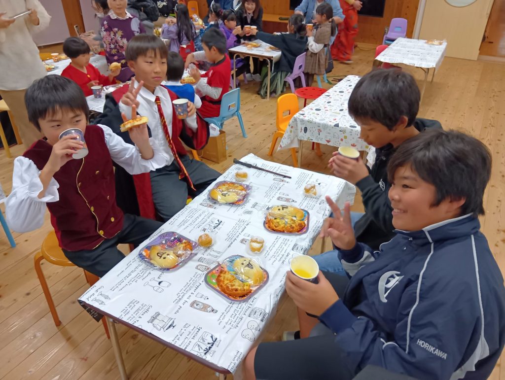 友達や保護者の皆様、英語教師と共に会話を楽しみながら美味しく召し上がっていただくことが出来ました♪