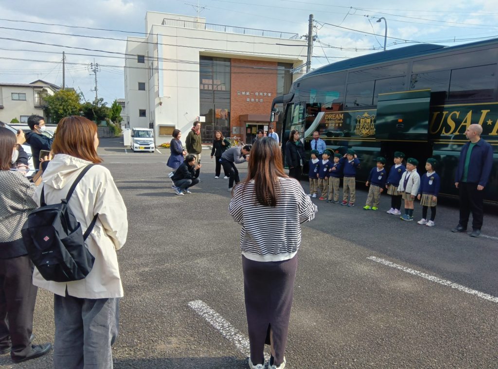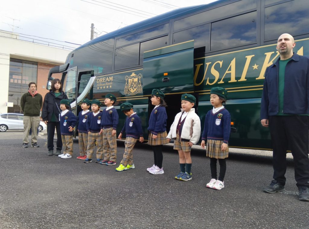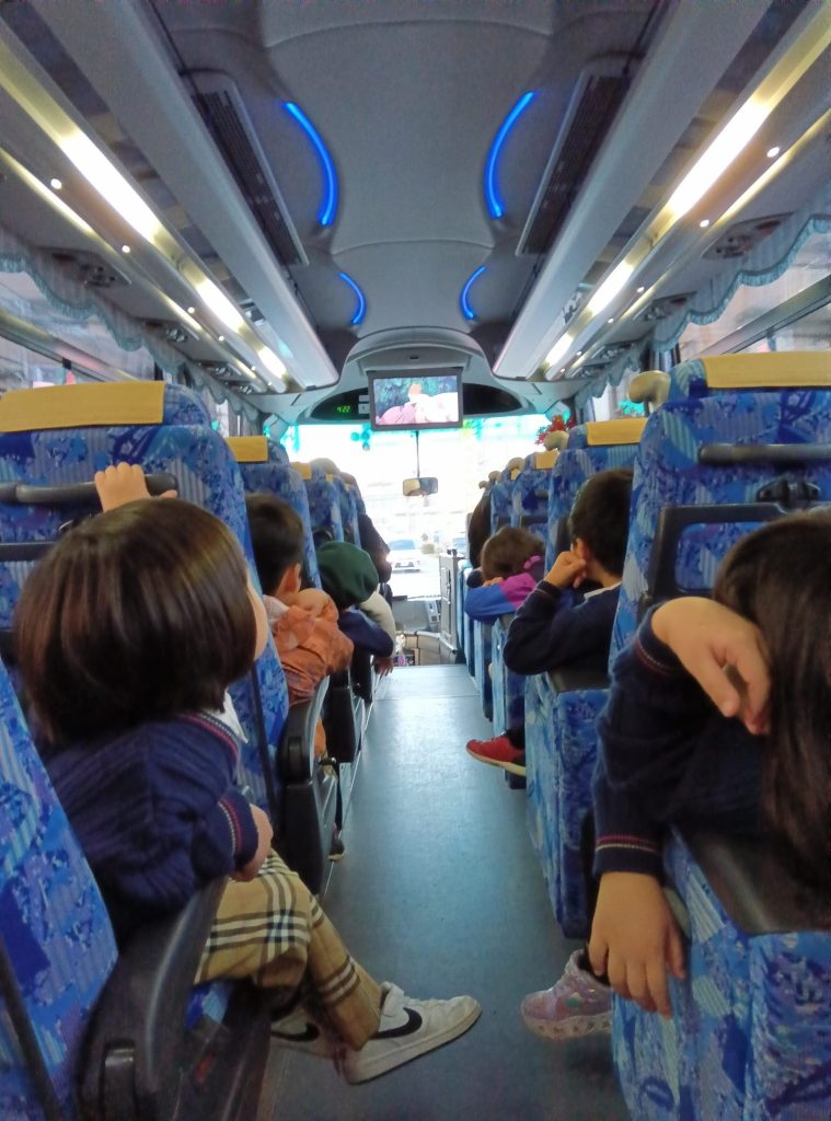 バスの中では、運転手さん、引率してくれる先生方にご挨拶をし、朝の会を行いました。