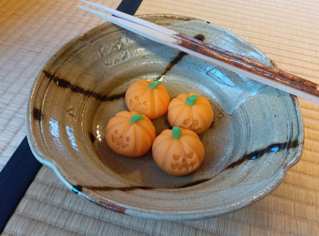 和菓子はハロウィンにちなみ、ジャックオランタンの形をした可愛いお菓子でした。