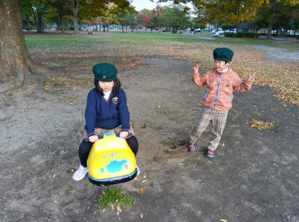 どんぐりや落ち葉をみつけたり、色々な遊具で遊んだり、たくさん楽しむことが出来ました!