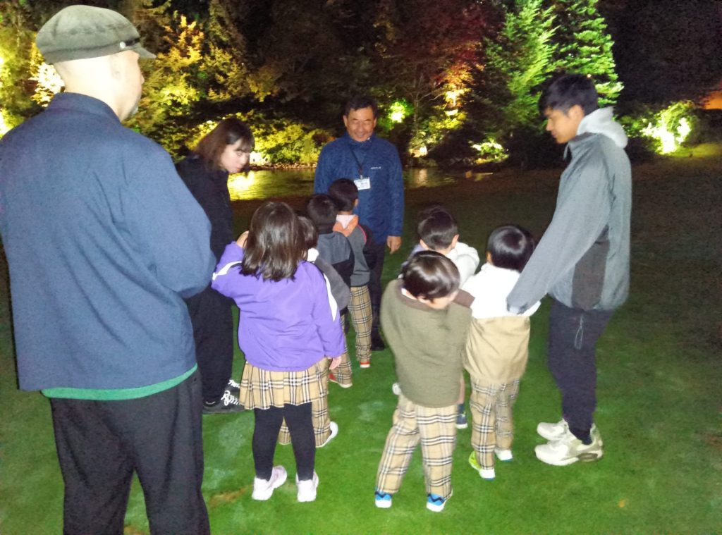 We had a wonderful first day for our Yurikago Sleepover. The weather was a little cool, but it was sunny all day! We had a delicious boxed lunch at Tsutsujigaoka Park. Next, we had our Tea Ceremony class at the Hachima household. The children enjoyed some special halloween-themed wagashi with their green tea! Next we played a lot at Nanakita park. The children played on the swings, slides and other fun things there! Last it was finally time to go to the Royal Park hotel. The children enjoyed Uno with their teachers and ate a yummy dinner too. When it was dark, we went outside to look at the moon and stars. A kind staff member from the hotel taught the children about what stars they can see in autumn. The children could even see Saturn through the telescope! Then it was time to get ready for bed, the children listened to some stories by their teachers, and soon they were fast asleep. They are all resting for day two of their amazing sleepover!