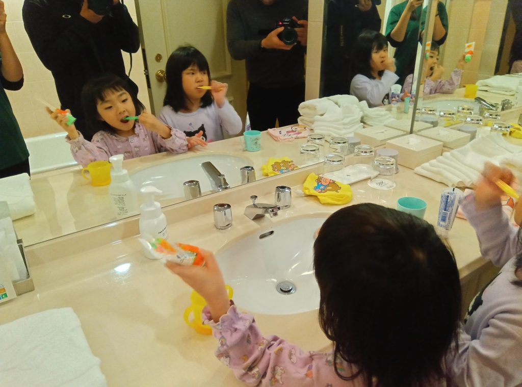 お部屋に戻り、お風呂に入り、寝る準備をしました!