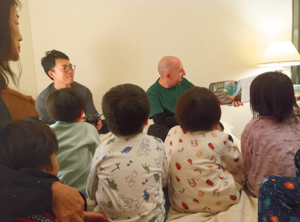 寝る前に、ショーン先生とすみれ先生が読み聞かせを行いました。