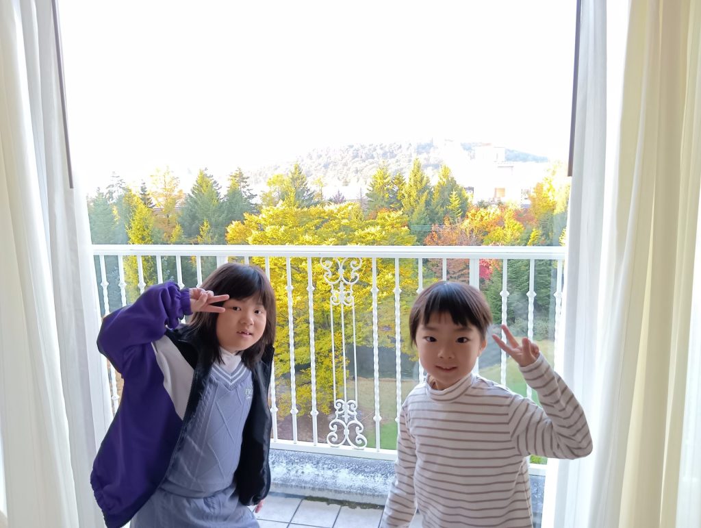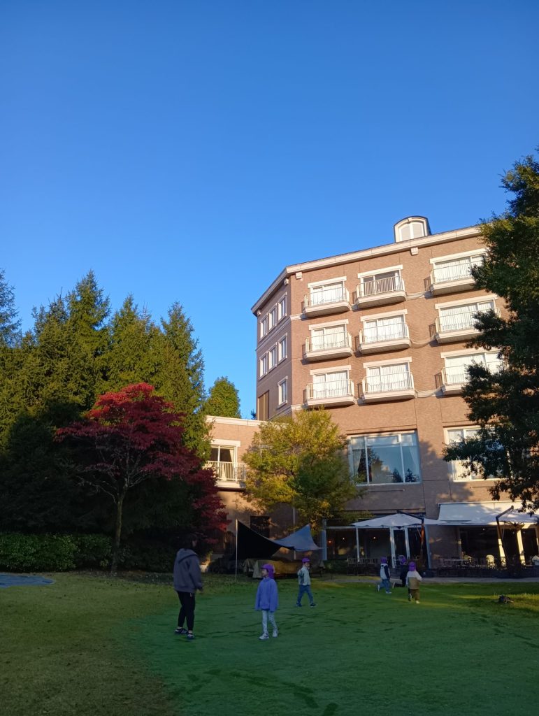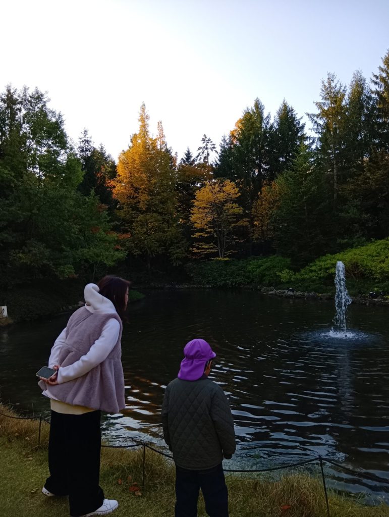 中庭で少し遊びました!紅葉や噴水がきれいでしたね!