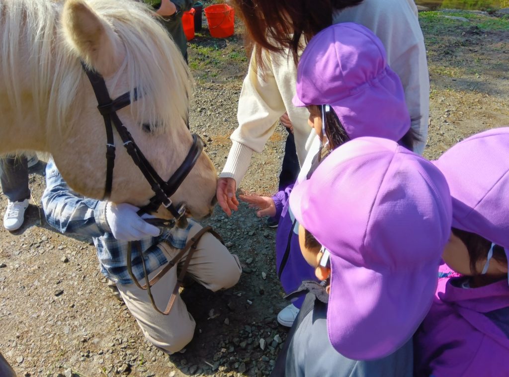 初めは「ちょっとお馬さん乗るの怖いかも、、、」と言っていた子ども達も、お馬さんと触れ合う中で気持ちが変わったようで、「もう一回乗りたい!」と積極的に乗馬体験に取り組んでおりました!