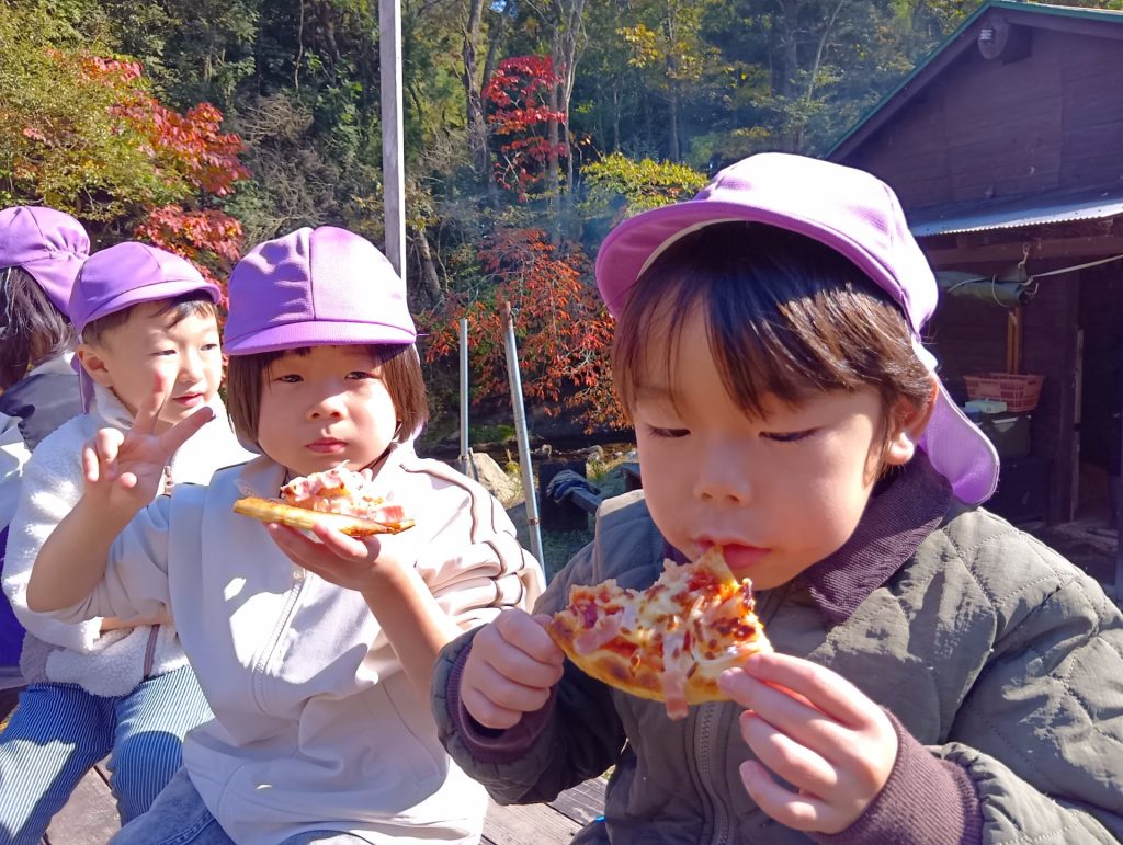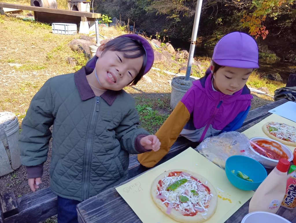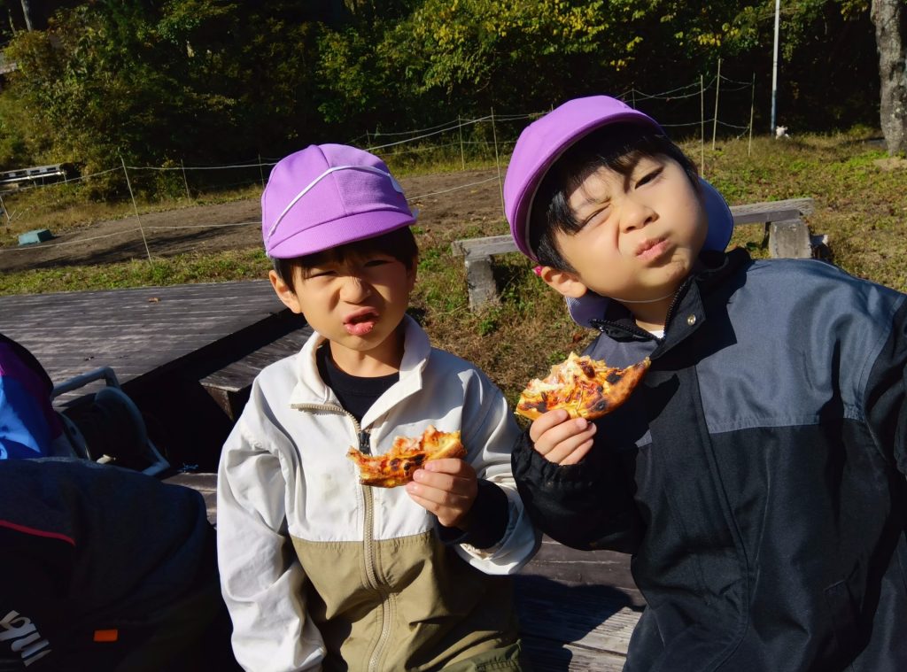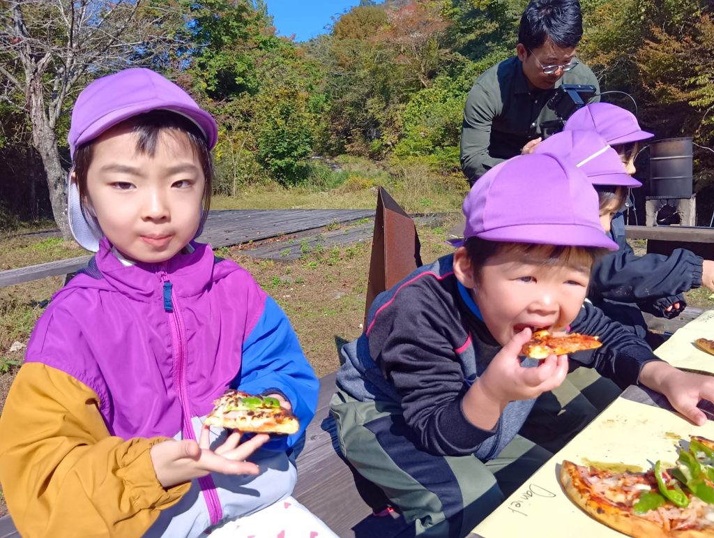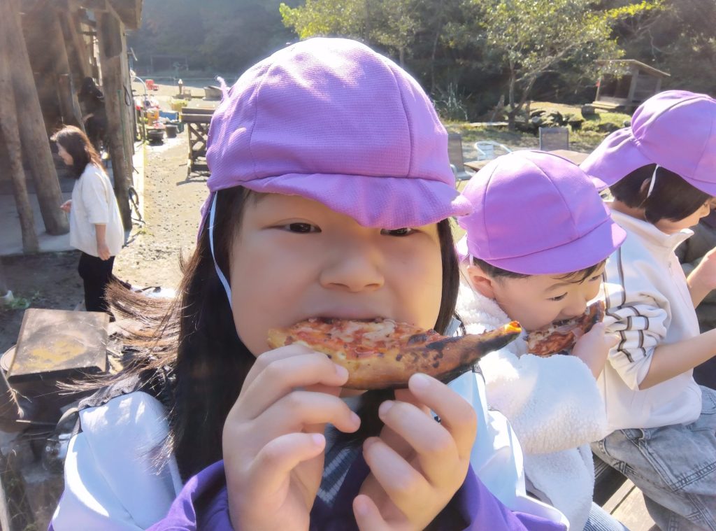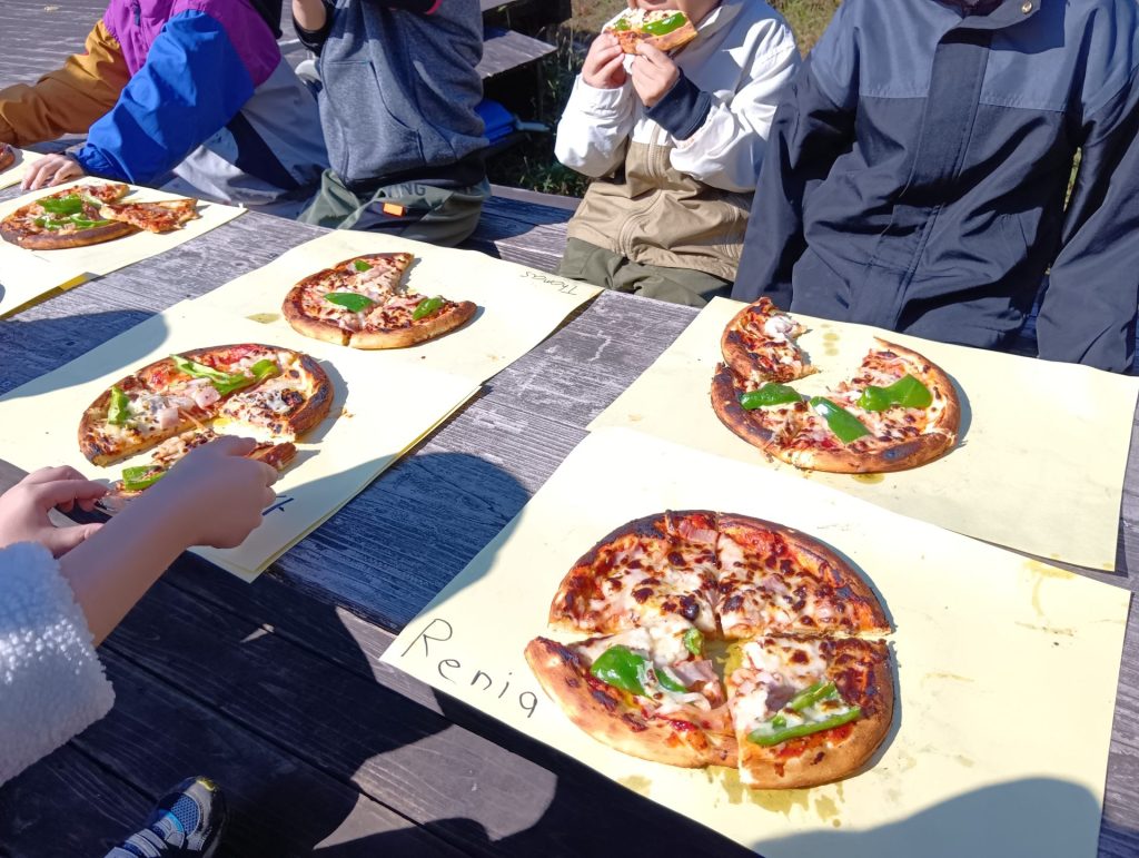 青空の下で涼しい風や川のせせらぎを感じながら、お友達と一緒に食べるピザは格別でしたね☆
