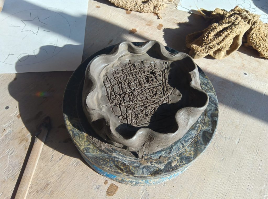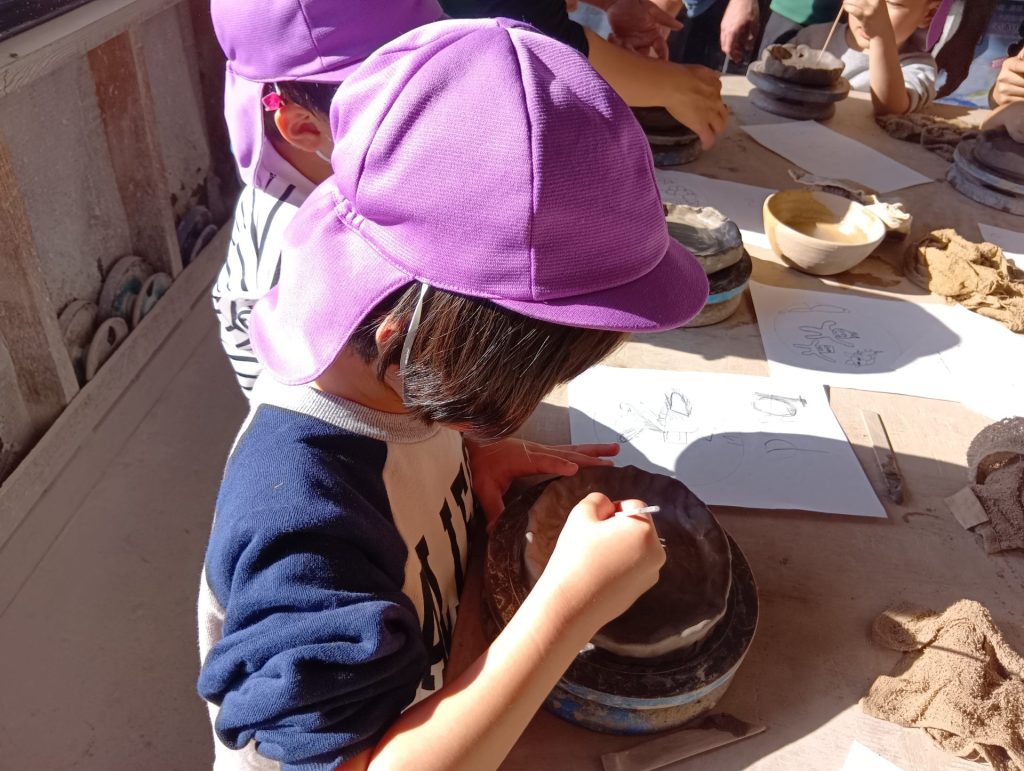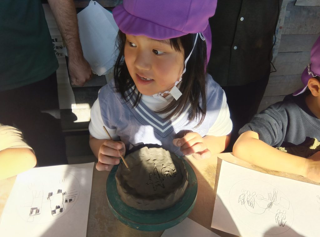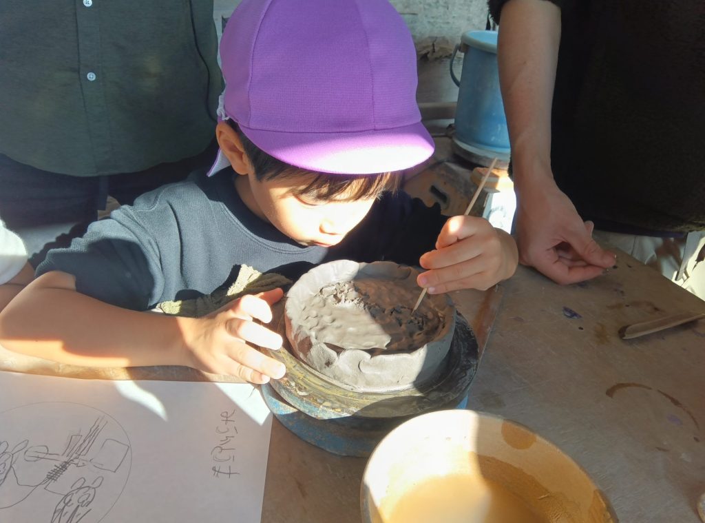事前に作りたいお皿のデザインを絵に描き、その絵を見ながら作ろうと頑張る子ども達!
