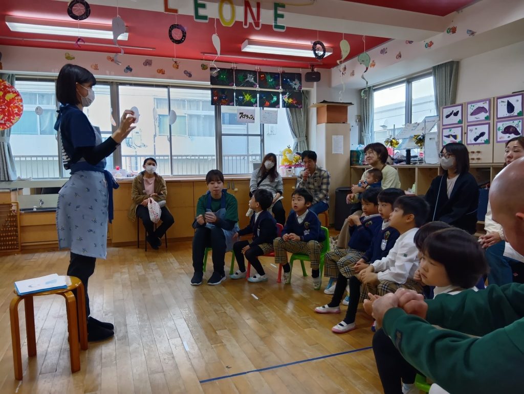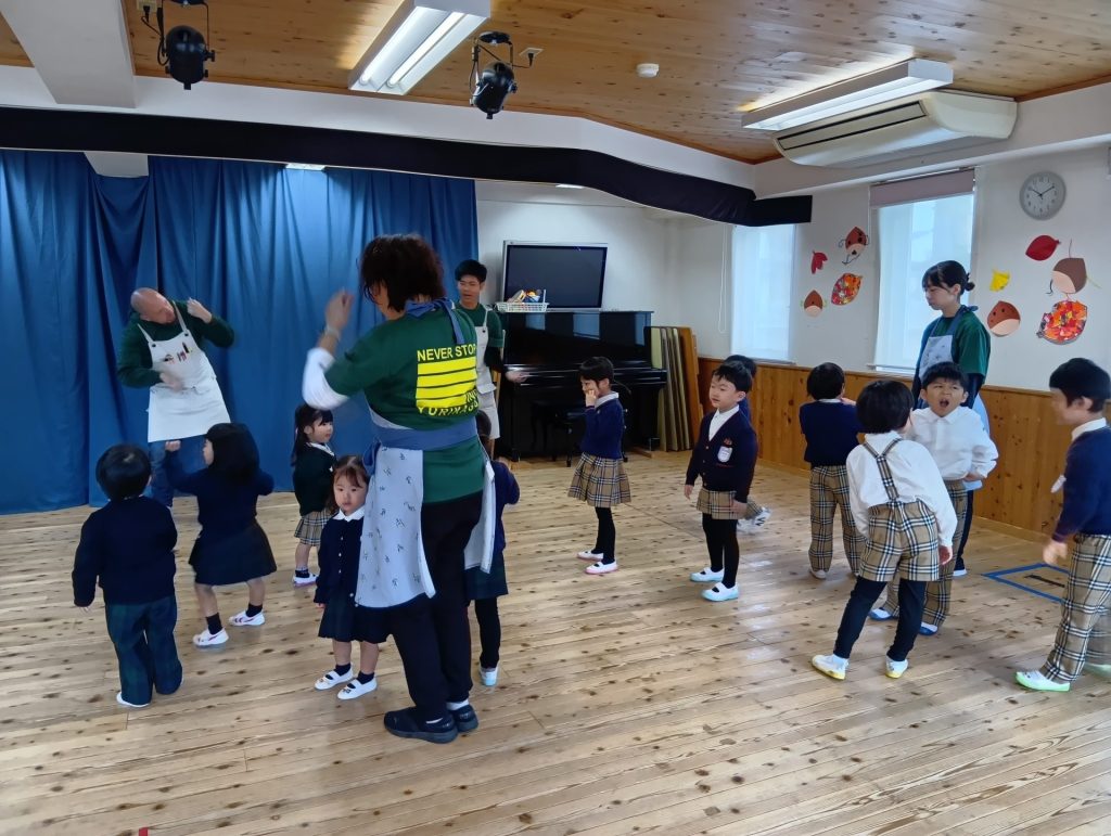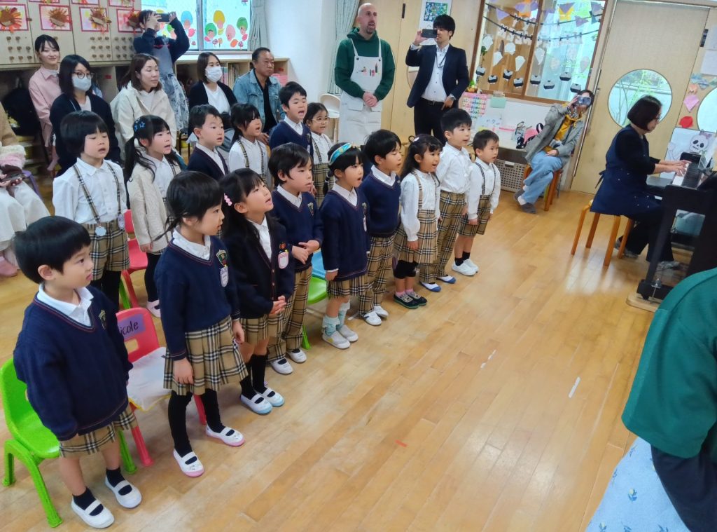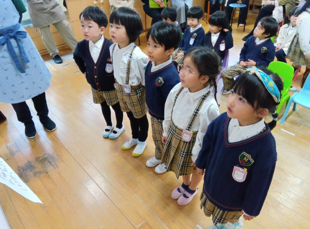 今回はコミュニケーションタイムから始まり、イングリッシュタイムや音楽指導、食育の様子をご覧いただきました。