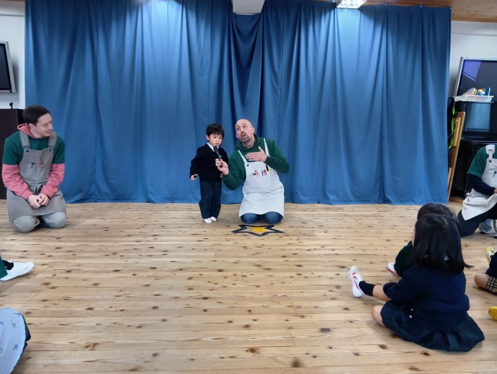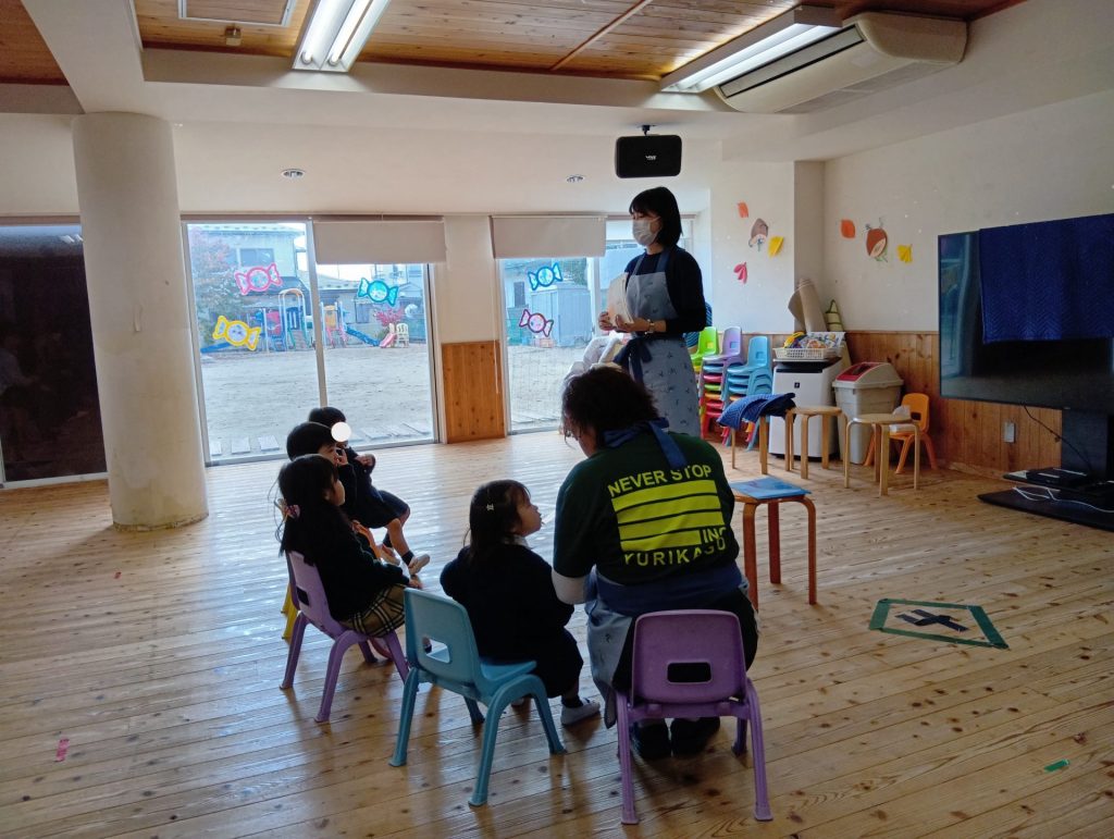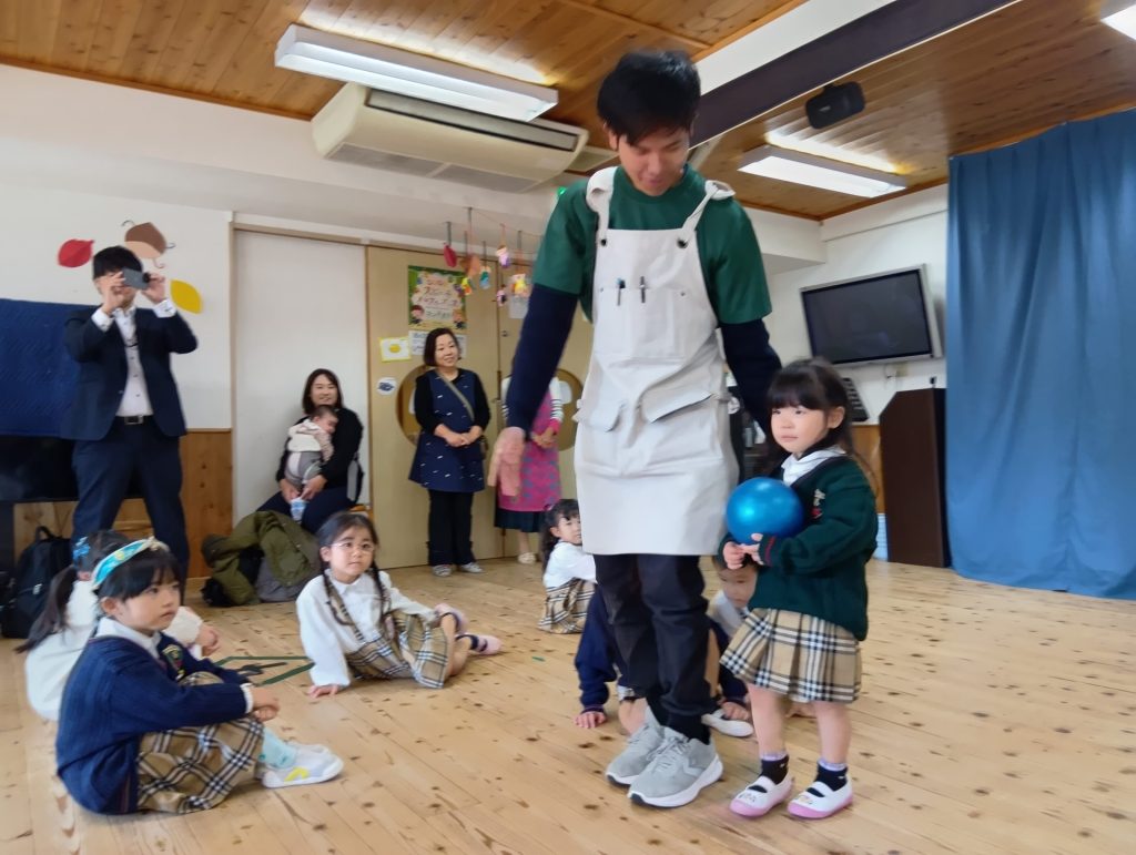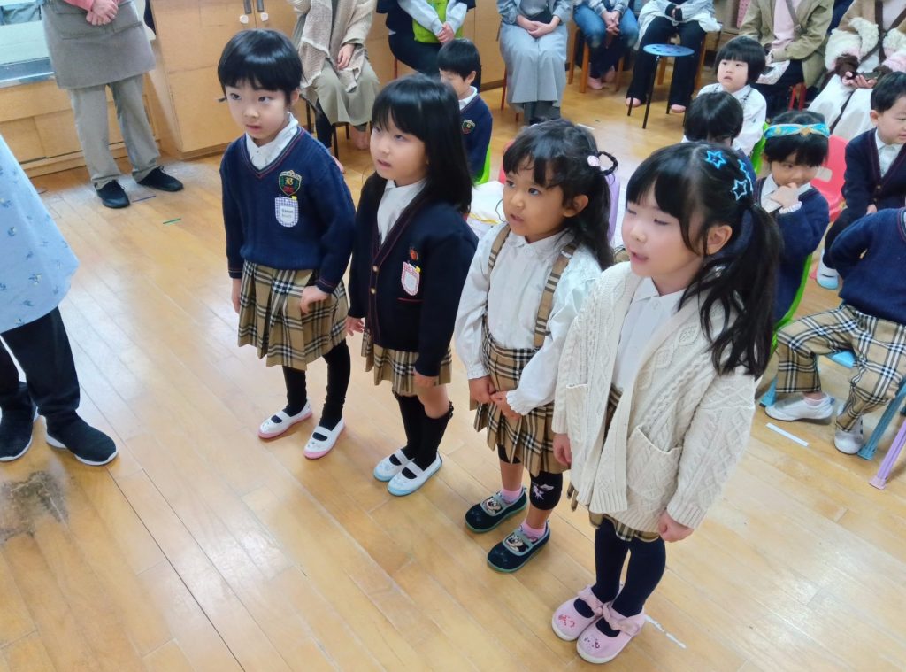 今回はコミュニケーションタイムから始まり、イングリッシュタイムや音楽指導、食育の様子をご覧いただきました。