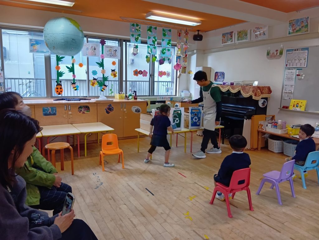 trash canを使った活動やお歌にもとても楽しそうに取り組む様子が見られておりました!