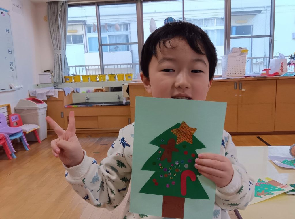 周りに雪やサンタクロースを描き、オリジナルの素敵なツリーが完成しました♪