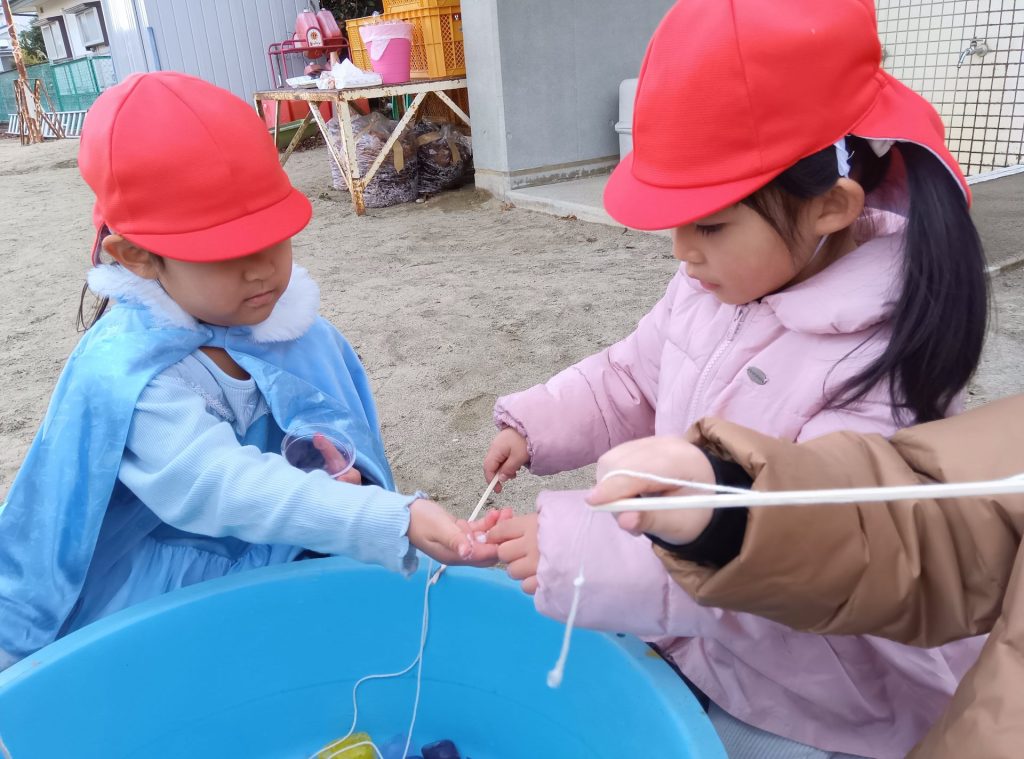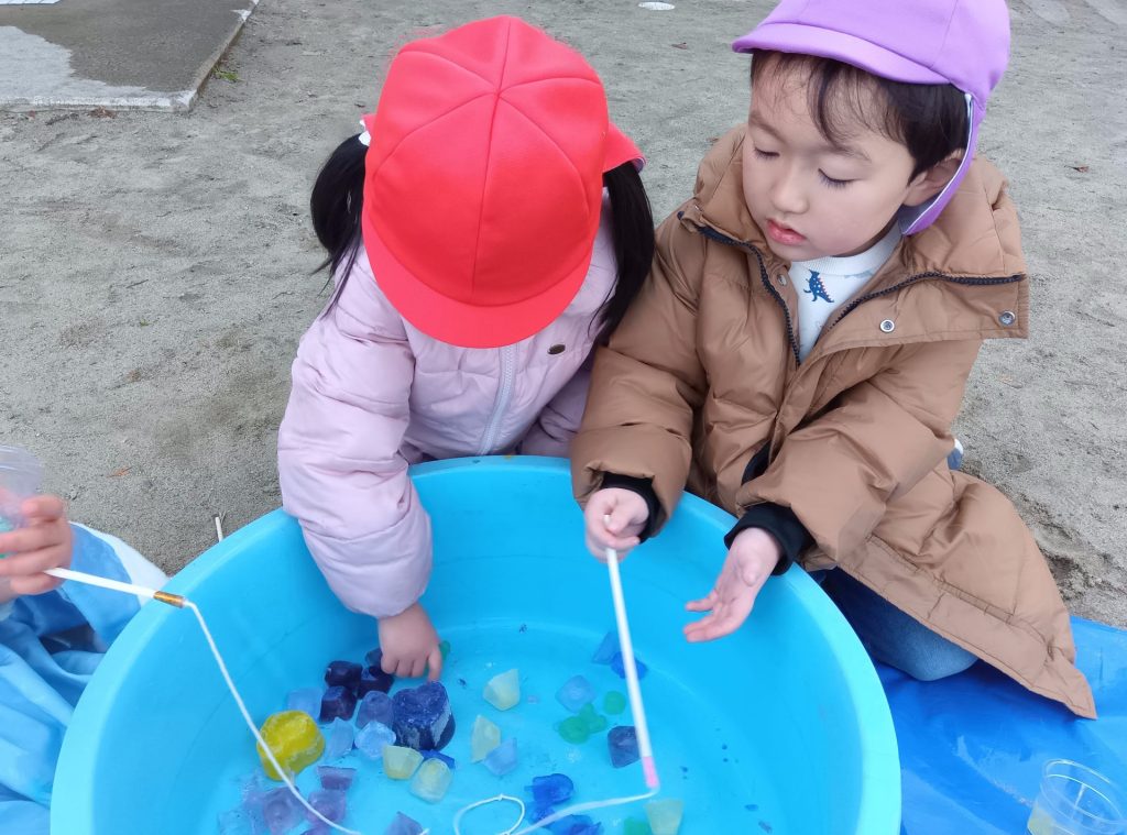 ひんやりと冷たい氷の感触や、きれいに溶けていく様子を楽しみました★