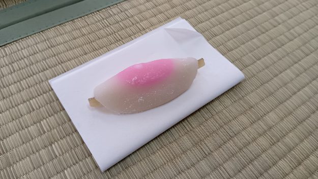 本日は「花びら餅」というお正月にちなんだお菓子でした。