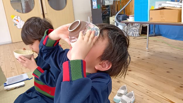 3月の茶道参観に向けて、本日は自分が点てたお茶をお友達に飲んで貰いました!