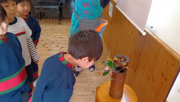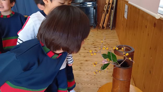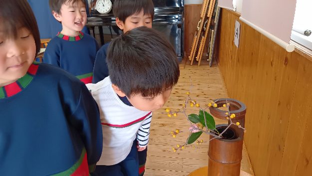 蠟梅というお花はとても香りがよく、レッスン後に子ども達と嗅がせて貰ったところ、「シャンプーの匂いだ!」「いいにおい!」と嬉しそうにお話しする様子も見られておりました♪