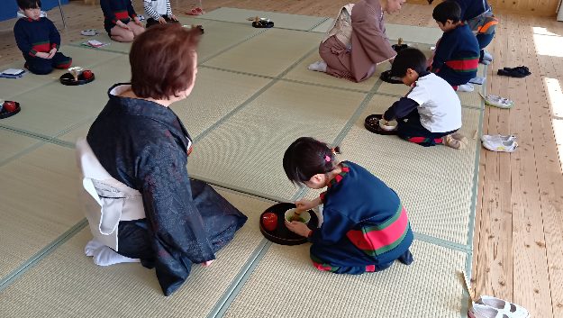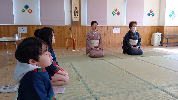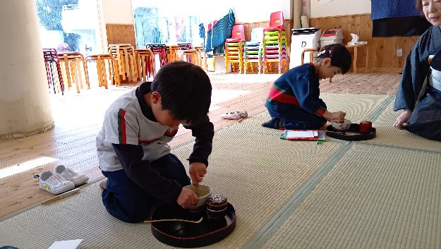 初めに礼や立ち方・座り方を確認してお菓子をいただきました。