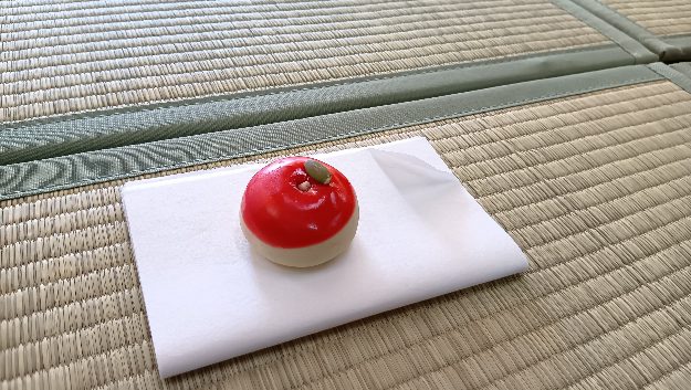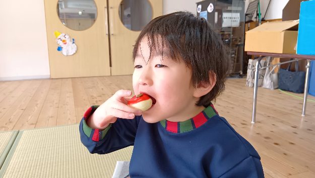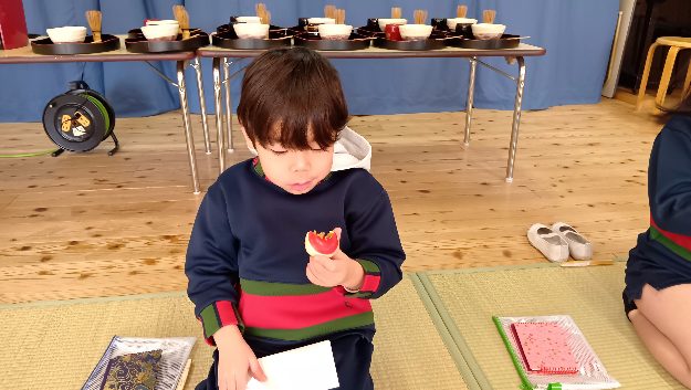 本日のお菓子はりんごの形の和菓子で、とても鮮やかで可愛らしい見た目に大喜びの子ども達でした!