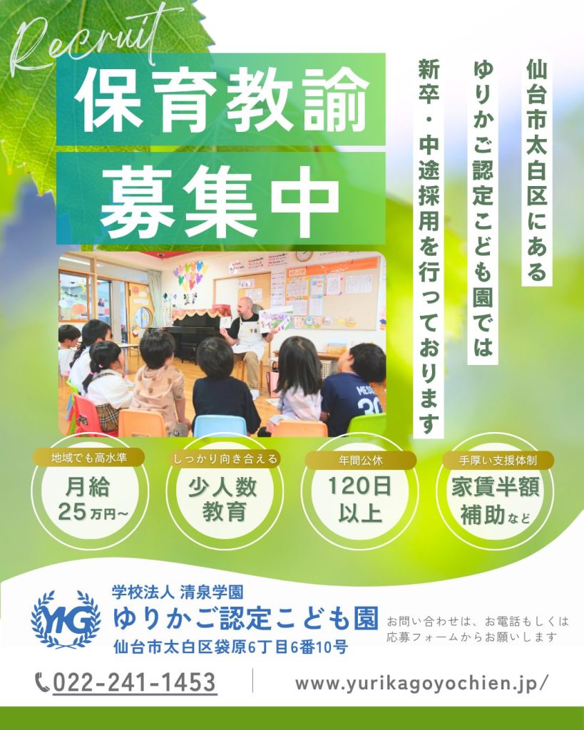 教育に情熱をもって取り組める保育教諭を募集しています。